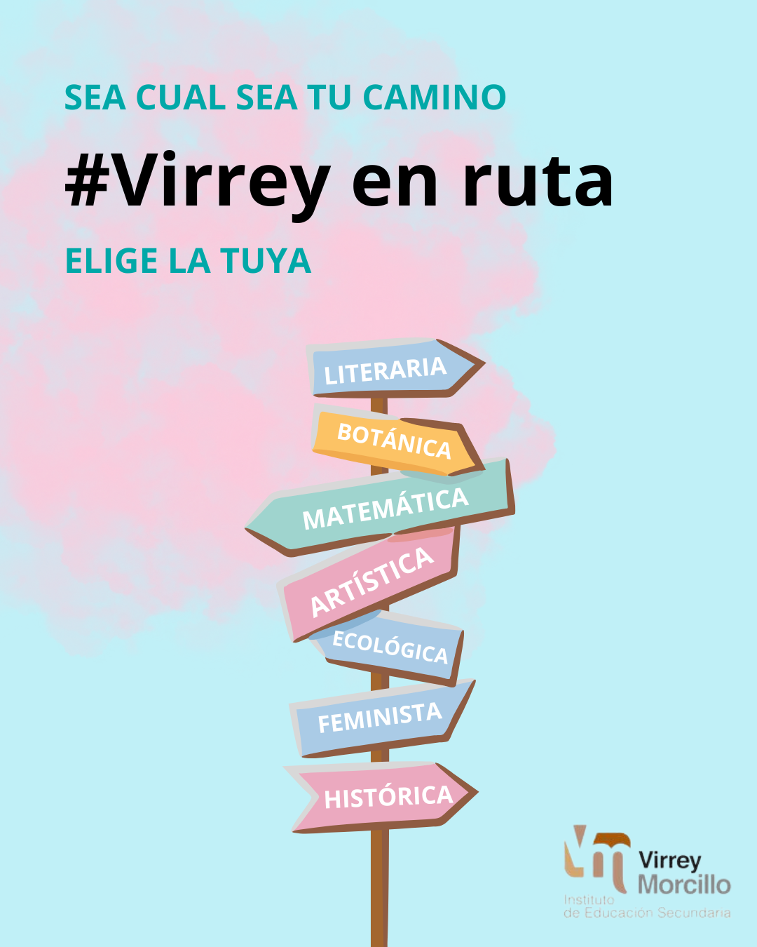 Desde el curso 2023/24 se viene llevando a cabo en nuestro IES un proyecto de innovación denominado Virrey en Ruta que consiste en que los alumnos, guiados por sus profesores, investigan, seleccionan y crean una serie de rutas temáticas por Villarrobledo. En este tercer año es cuando se llevan a la práctica dichas rutas por las calles de Villarrobledo. En total se han creado 22 rutas que exploran de manera amena, práctica y profunda los ámbitos en los que se desarrolla la vida y la historia de nuestra localidad. Pero no solo con las rutas aprendemos, de todas ellas poseemos un resumen de lo investigado a través de unos dípticos que nos muestran lo que podemos visitar y descubrir en nuestra localidad.