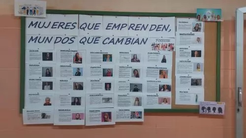 En el marco de las iniciativas del Aula Profesional de Emprendimiento (APE), con motivo del 8 de marzo, Día Internacional de la Mujer, el alumnado de Formación Profesional ha impulsado una iniciativa para visibilizar el emprendimiento femenino, a través de un mural que recoge multitud de historias que reflejan el talento, la innovación y la capacidad transformadora de mujeres emprendedoras.
